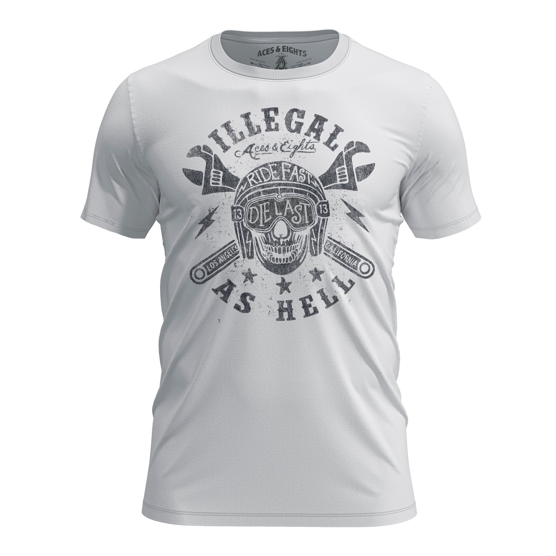 Aces & 8ights Illegal as hell is a hand drawn, hand painted graphic created in the USA. Get on your Harley Davidson and ride with this smoking hot t-shirt!