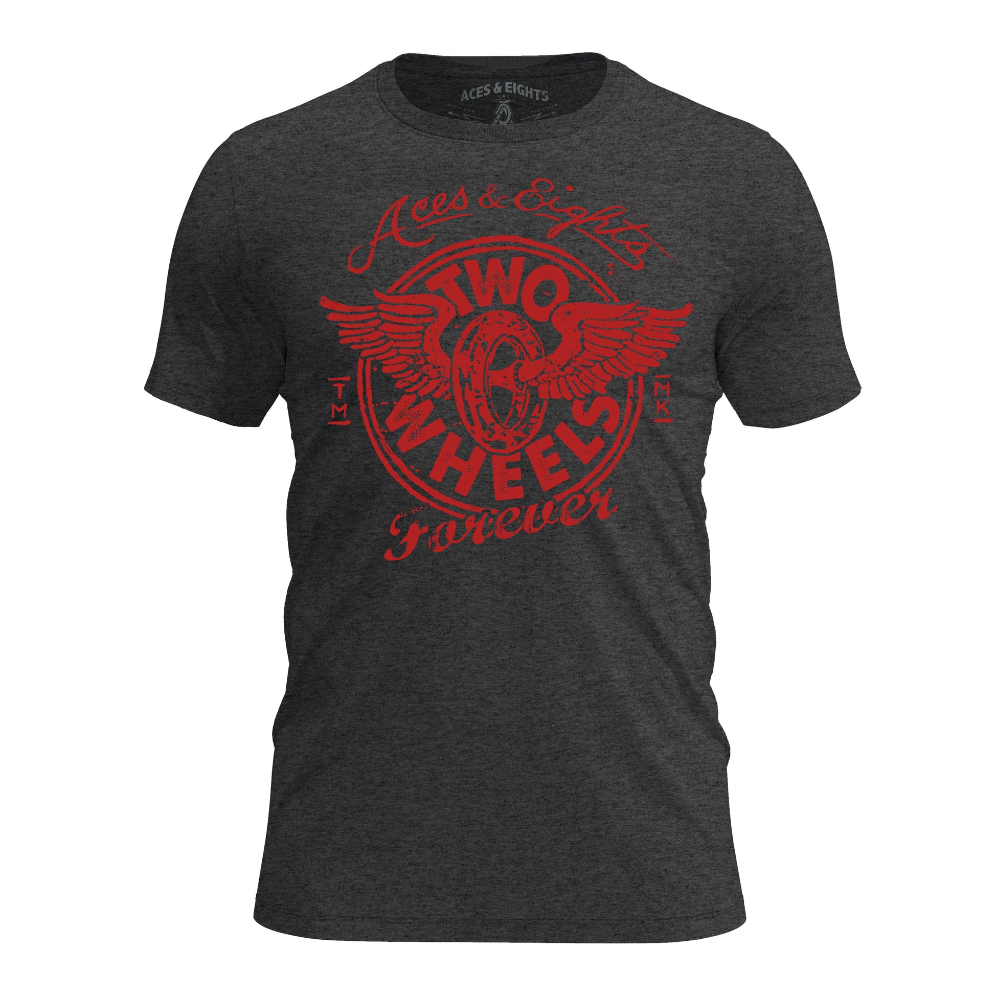 Aces & Eights Two Wheels Forever is a hand drawn, hand painted graphic created in the USA.
